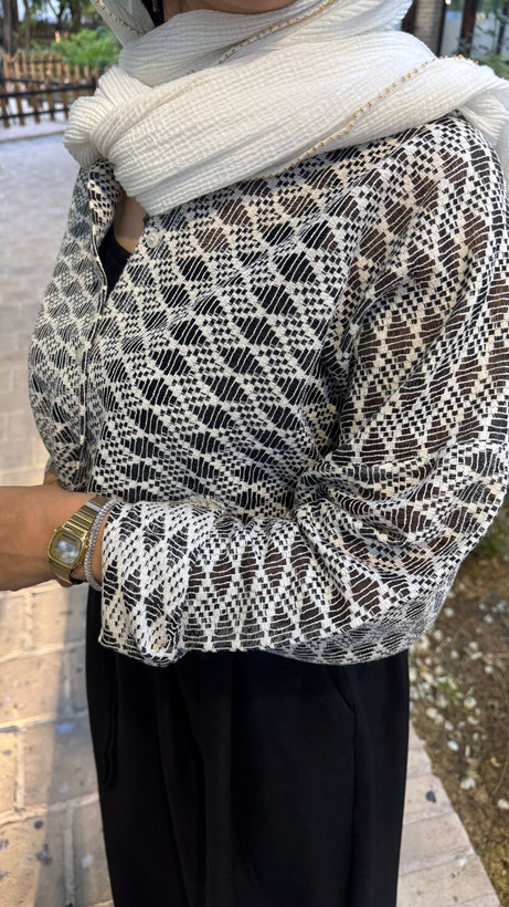 شومیز پارچه نخ قلاب بافی،فری سایز مناسب تا ۴۸