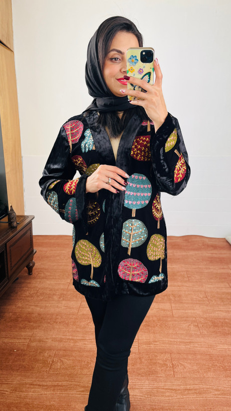 مانتو مخمل،تركيب پارچه مخمل و سوزن دوزى،قدكار٧٠مناسب تا سايز ٤٤،پهنا٤٤سانت